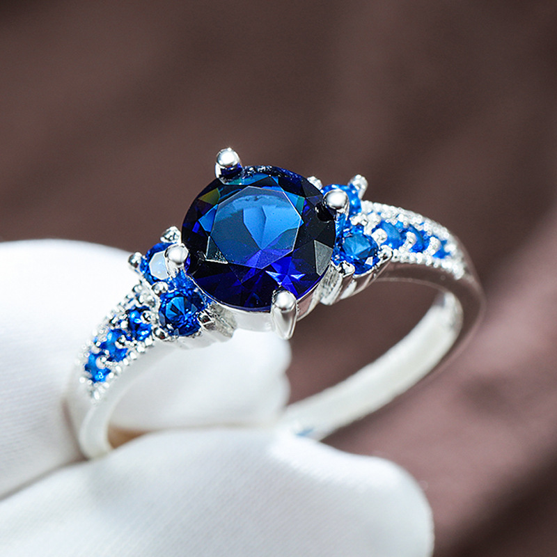 外国貿易の新しいwishアマゾンの愛は水色のジルコンの指輪を少しはめ込んでいます。