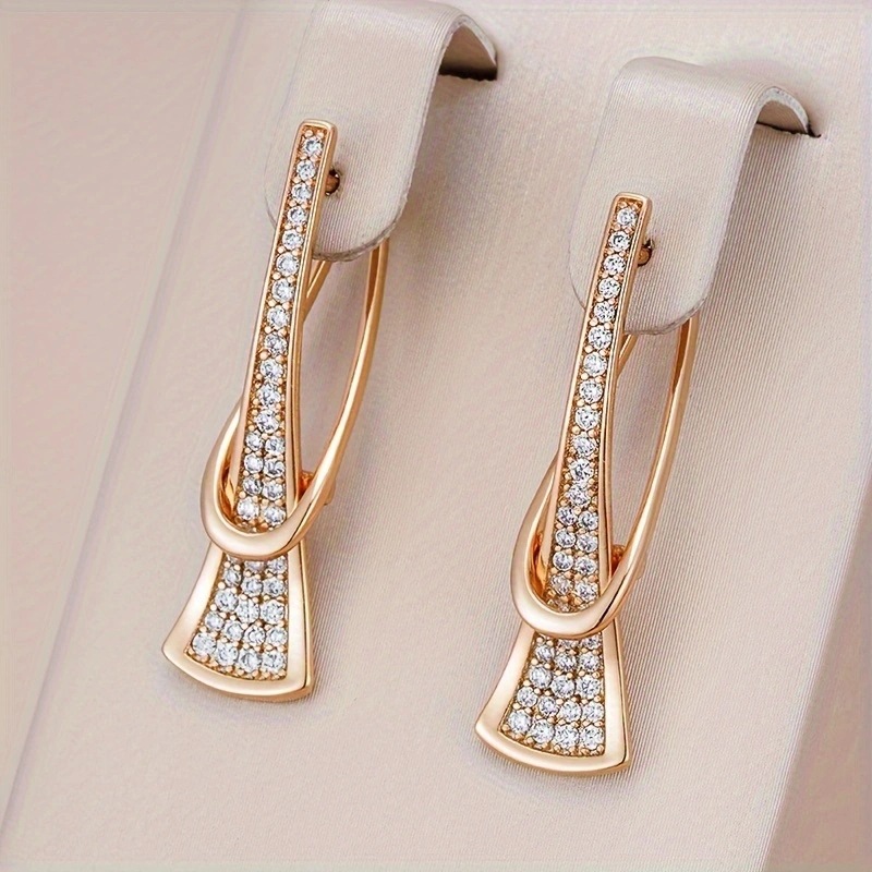 クロスボーダー人気のシャンパンゴールドの4つの小さなラウンドダイヤモンドオーバルジルコンイヤリング、エレガントな女性向け、ファッショナブルでレトロ