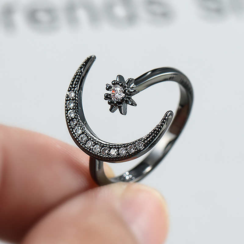 クロスボーダーshein熱売新型三日月星月欧米風ジルコン指環日韓指輪気質アクセサリー卸売り