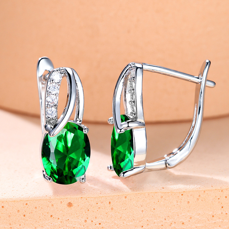 緑空クロスボーダーpdd起爆新型楕円水青ドリルジルコンメッキシャンパンゴールド耳ボタン結婚ジュエリープレゼント女