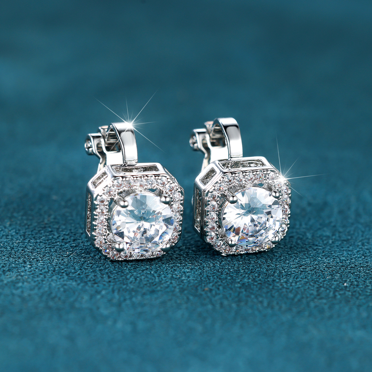 クロスボーダーwish速売通プラチナ超フラッシュ角型満ドリル大ジルコン耳クリップ女子アクセサリーシンプルでコンパクトな気質