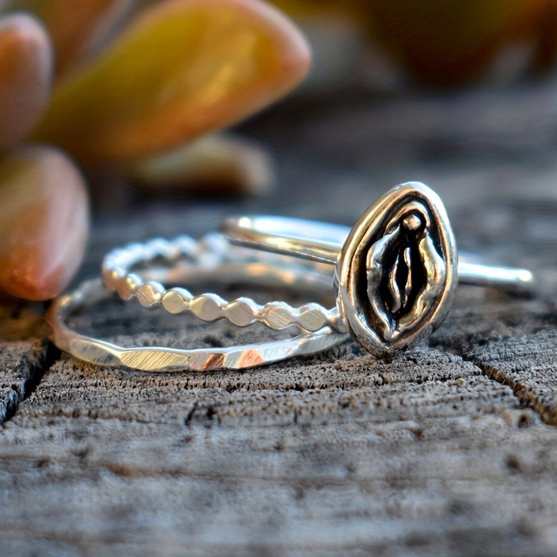 クロスボーダーshein新しい目黒い花の指輪3点セットins女性レトロ古いファッション大衆アクセサリー