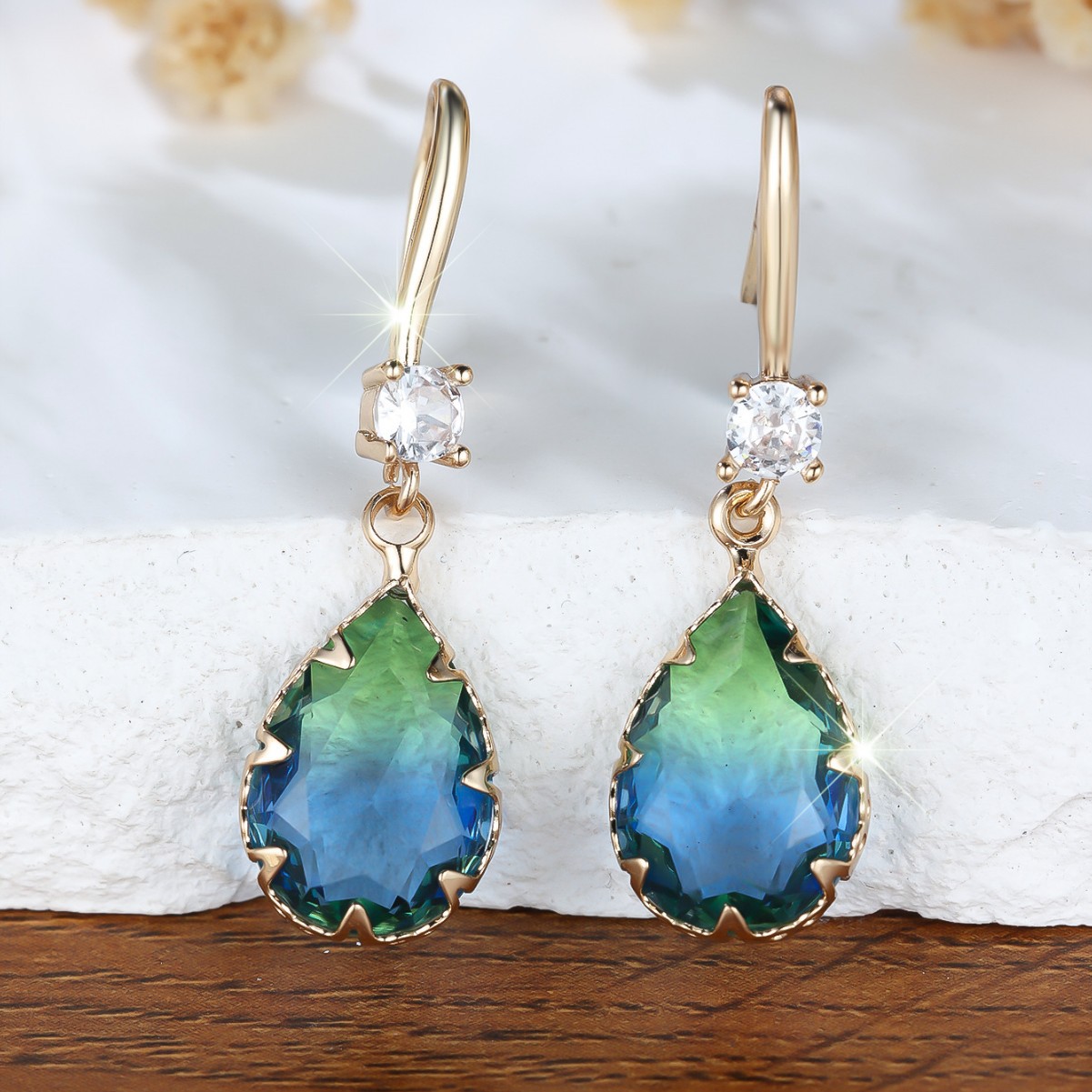 欧米の水滴碧璽の耳のフックはジルコンのイヤリングの復古の気質の超仙碧璽の高級感を象眼します。