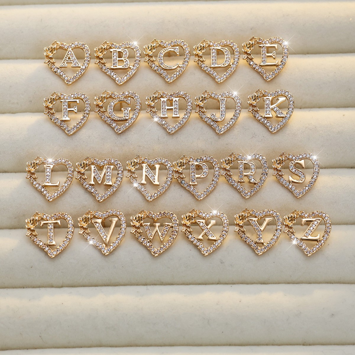 ネット赤熱売黄金ハート形全白ドリル文字ピアスシンプルファッション通勤百合ネット赤同タイプピアス