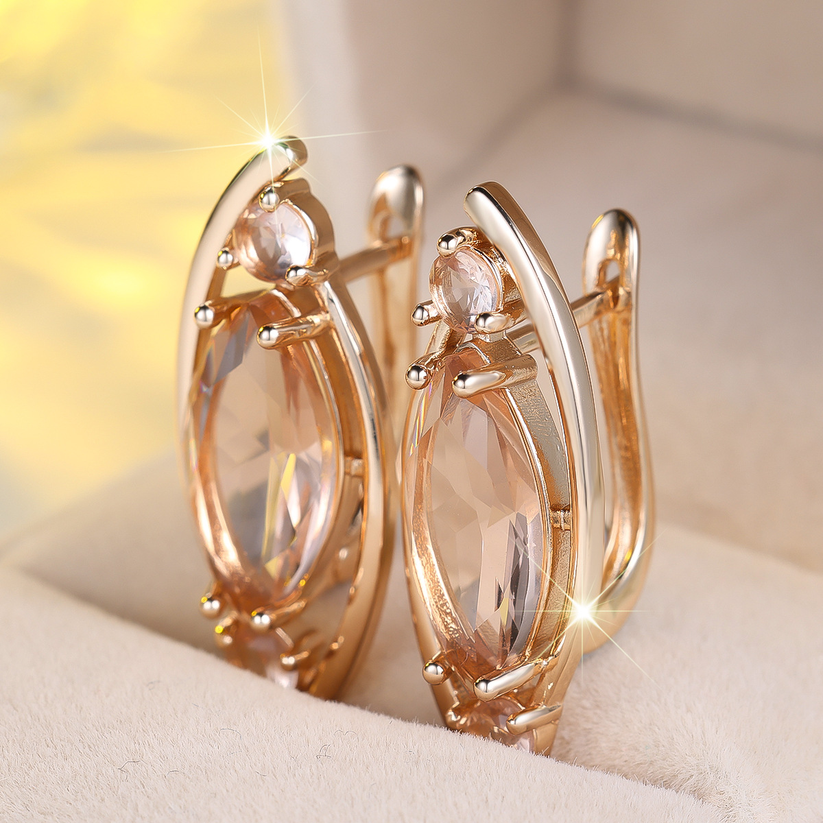 クロスボーダーフレンチ中空マーキスシャンパンガラスダイヤモンドイヤリング女性用コールドスタイル宮殿レトロ甘くてクールなイヤリング