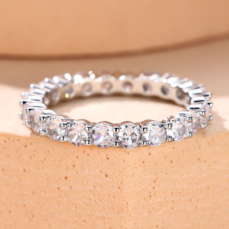 欧米風のプラチナの列のドリルの満輪の白いドリルのダイヤモンドの指輪の女性のシンプルな気質の高級感の小さいジルコンの指輪を入れます。