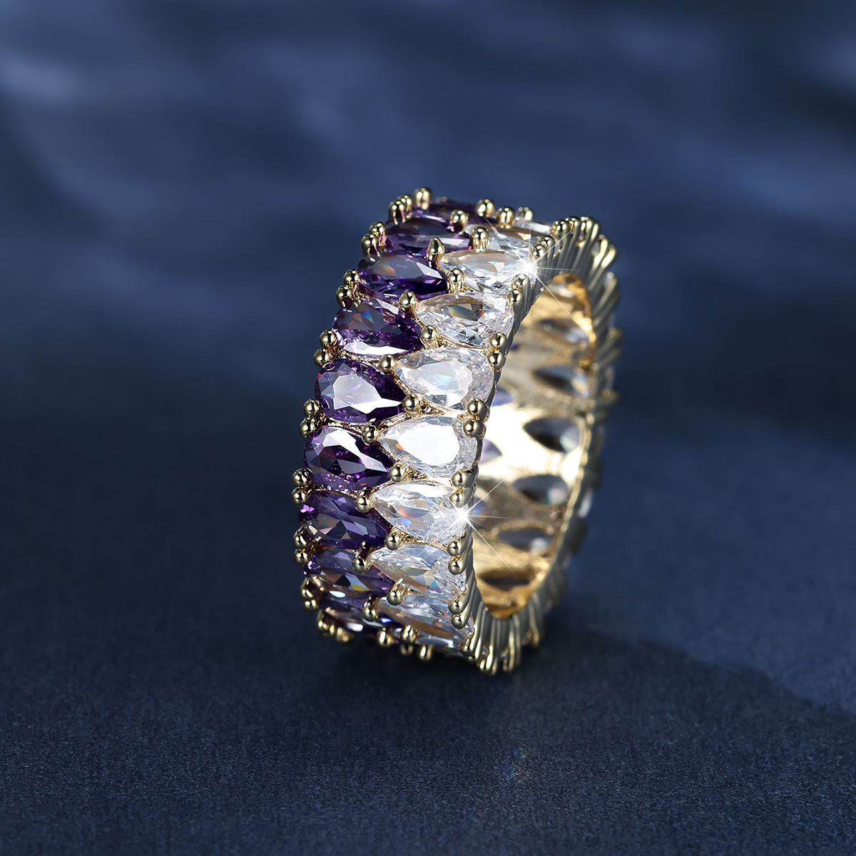 クロスボーダーwish厚白ドリル二列水滴指輪気質軽贅沢ファッション高級感指輪代発