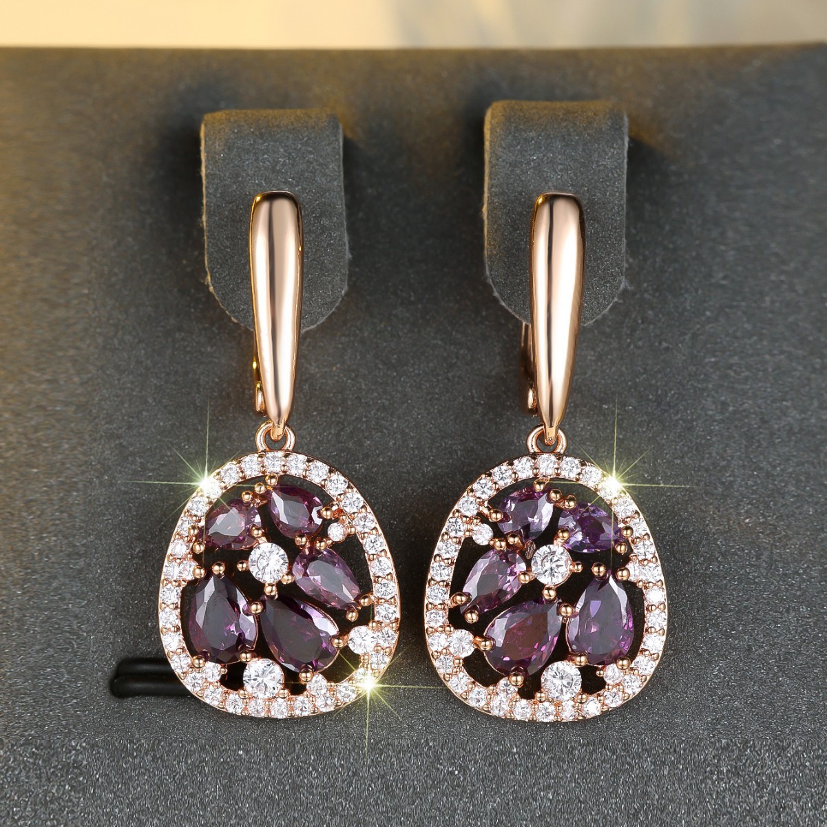 越境wishはシャンパンの金の水滴の卵の形の紫色のイヤリングの個性の小さい大衆の貴重な気品の優雅な耳飾りをまねます。