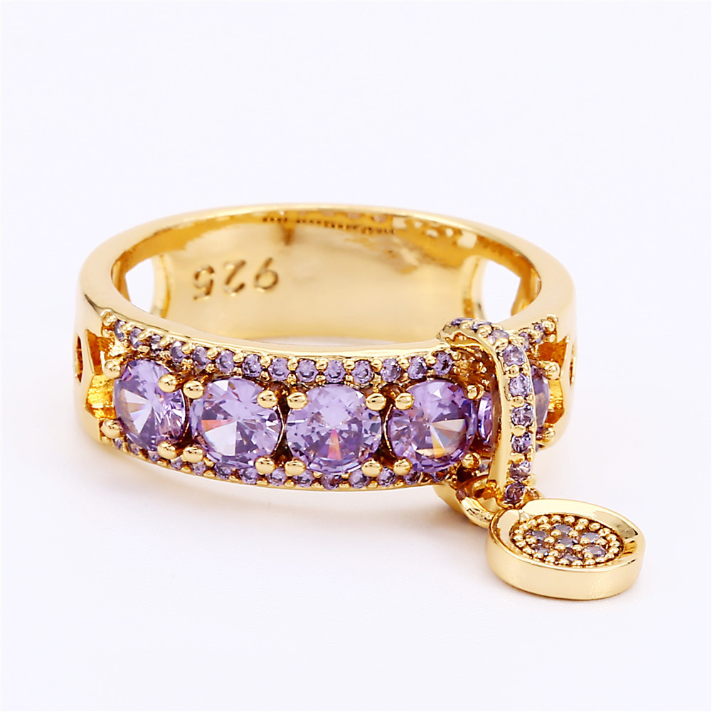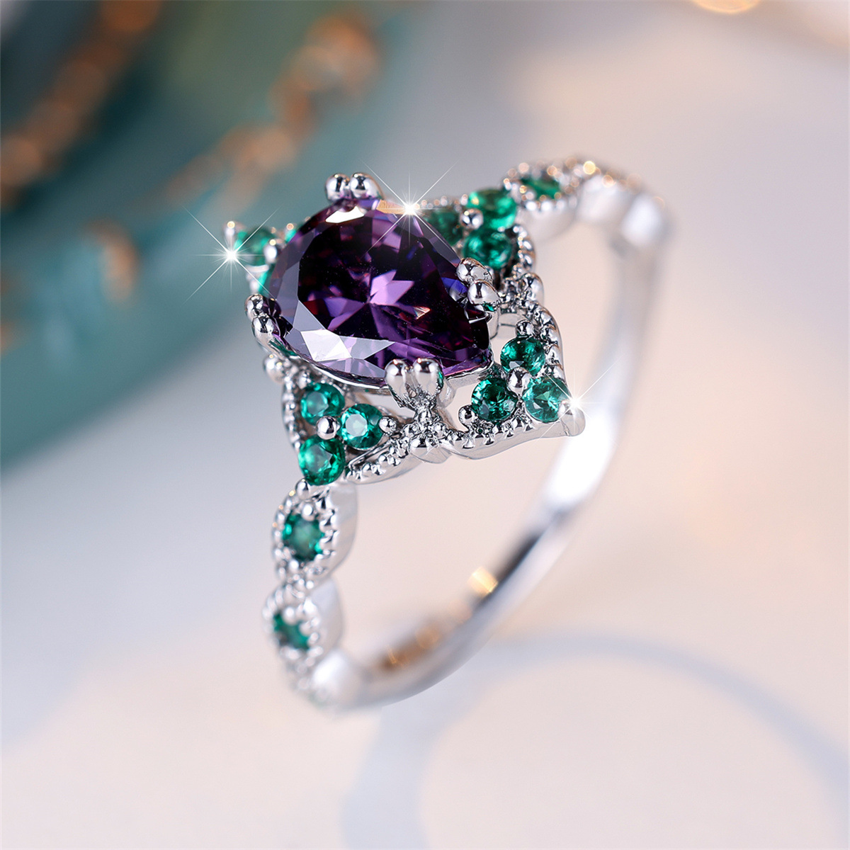 速売通の新型の水滴の紫のダイヤモンドの辺の祖母の緑の指輪は簡単で個性の小さい大衆の軽豪華な優雅な指輪の卸売りです。