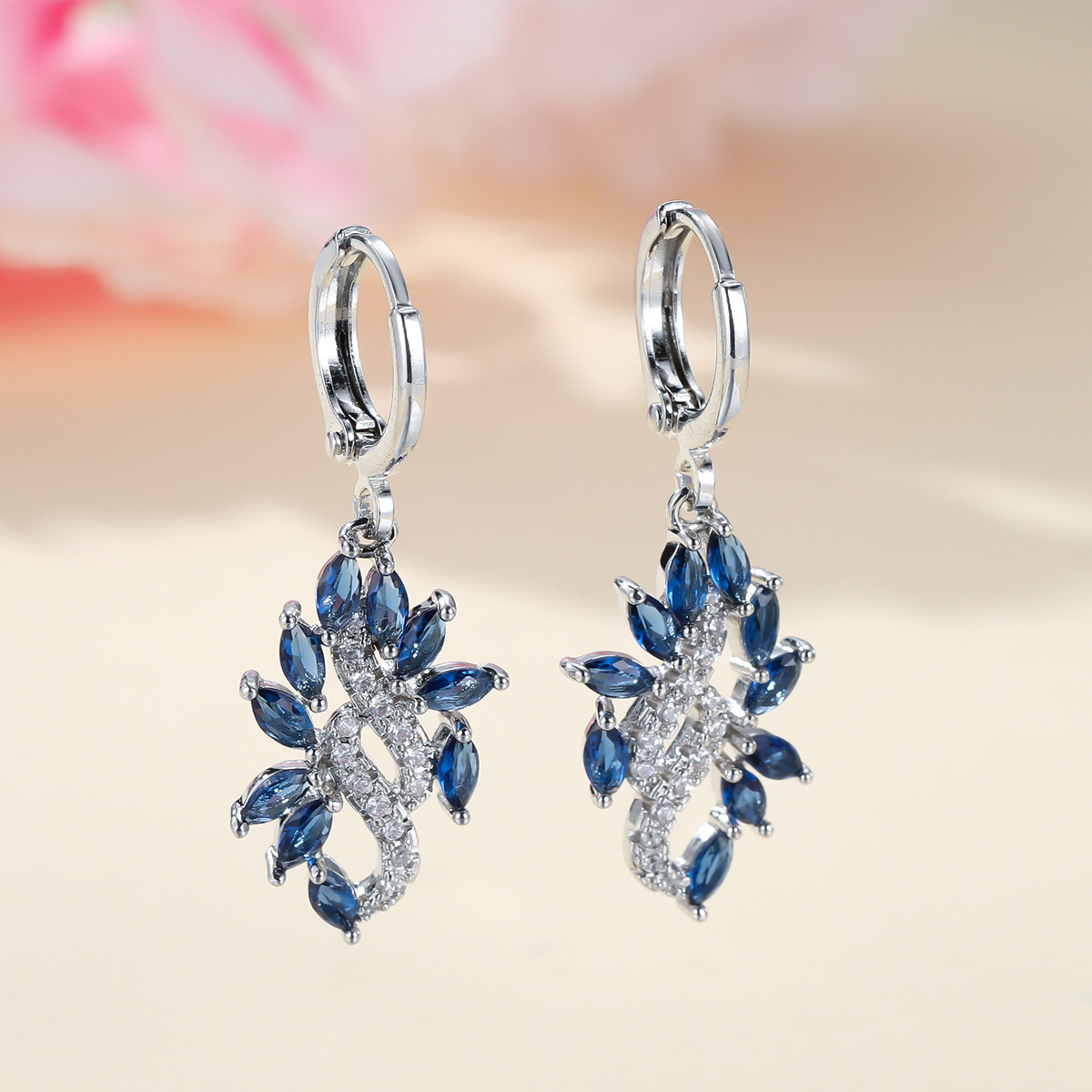ヨーロッパとアメリカンスタイルのシャンパンゴールド+ブラックゴールドサファイアブルーダイヤモンドバタフライイヤリング、パーソナライズされたファッショナブルで甘くてクールなイヤリングジュエリー卸売