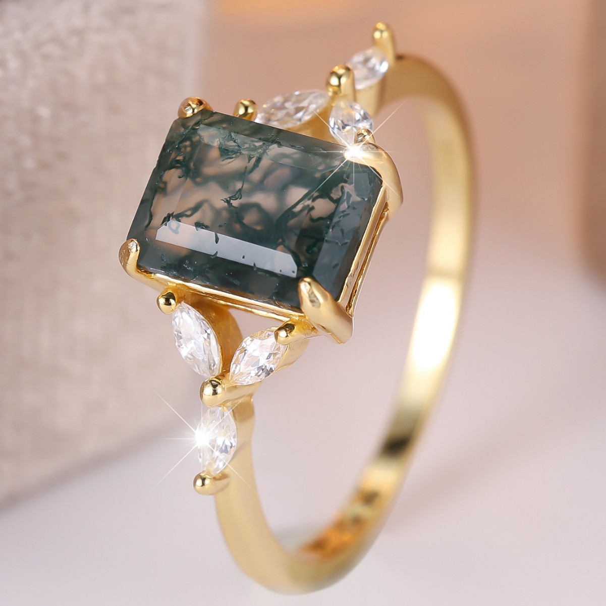 国境を越えたヨーロッパとアメリカのベストセラー長方形の水草グリーンモスストーンサイドマーキスS925スターリングシルバーリングファッショナブルで軽い高級感