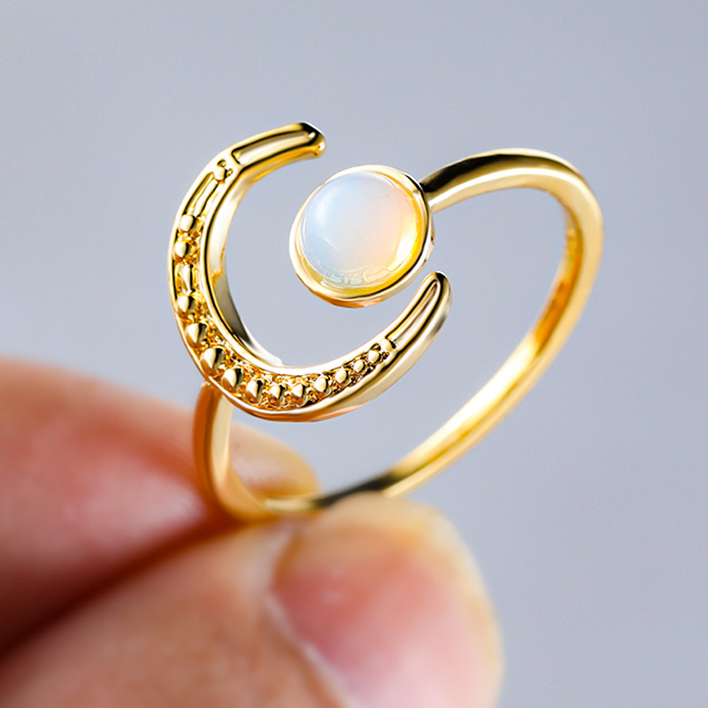 国境を越えた新しい熱売星月月月光石はドリルリングの女性気質ファッション高級感宝飾品卸売りに満ちている