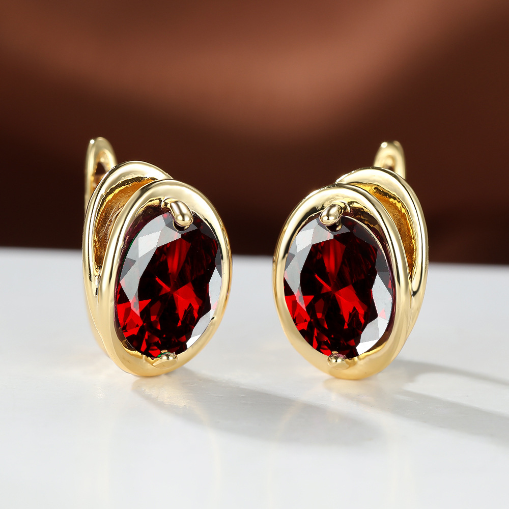 クロスボーダーwish速売通シャンパン金幾何楕円赤ドリルイヤリング女性ファッション通勤卸売り代理