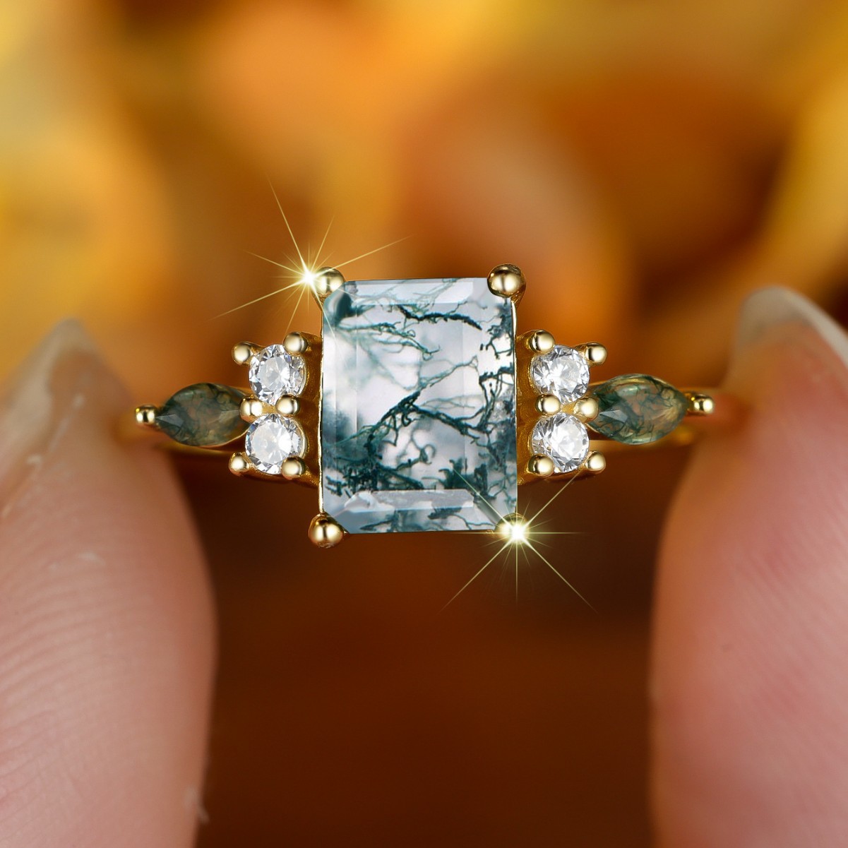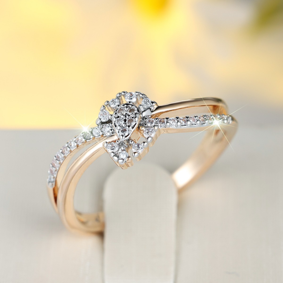 クロスボーダーwish新型愛白澳宝両側月三爪指輪シンプル個性小衆軽豪華指輪