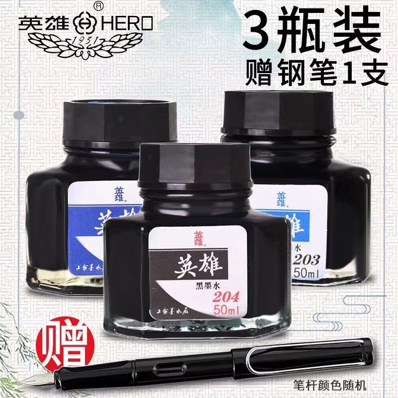 ヒーロー万年筆 インク ノンカーボン ノンブロックペン 万年筆 黒水 小学生 3年生 204 ピュアブルー ブルー ブラック ブラック