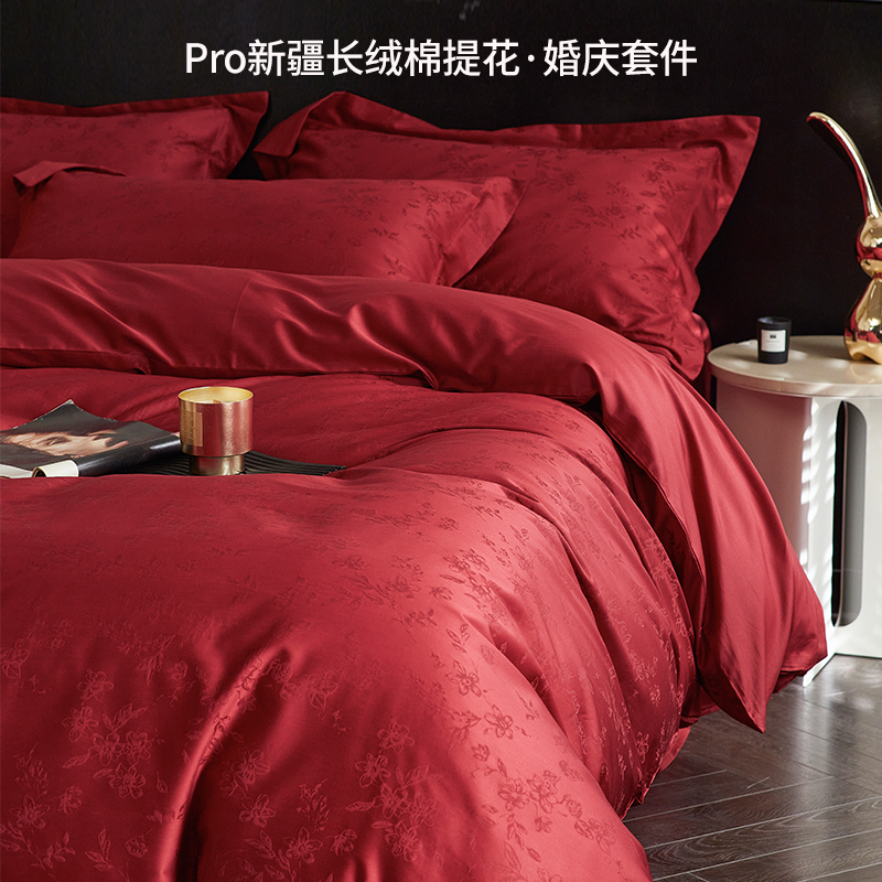 100S 長繊維綿ジャカード結婚式 4 点セット赤いベッドシーツキルトカバー純綿結婚式寝具