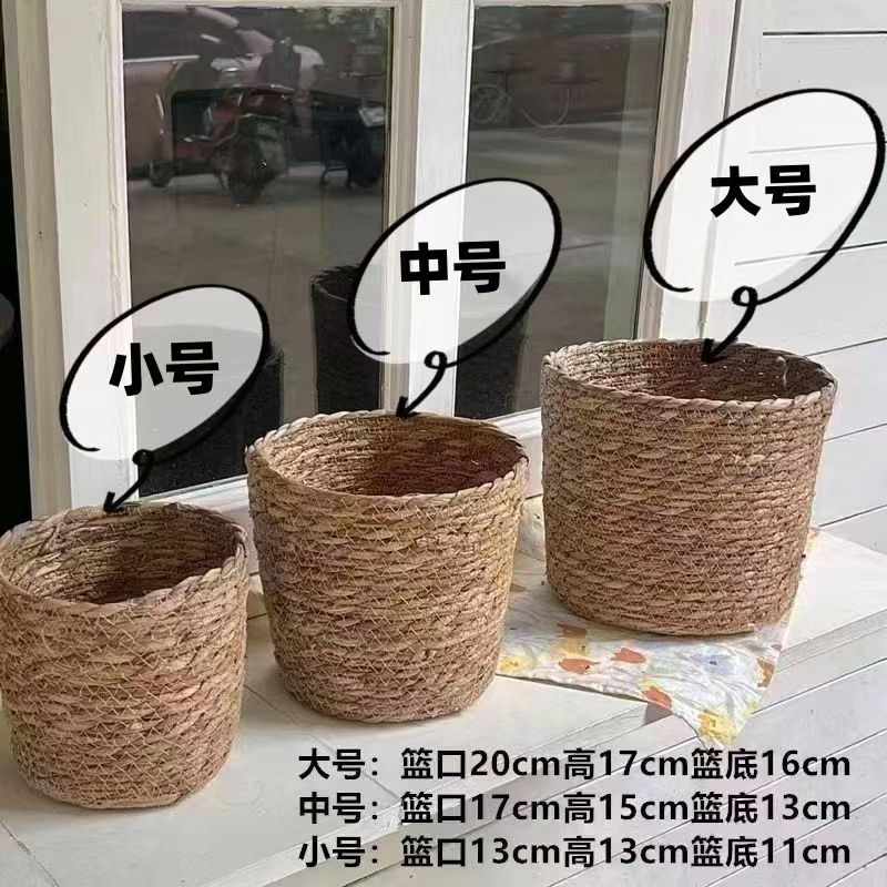 北欧風わら編みフラワーバスケットクマ栗花束ハグバケツフラワーアレンジメントバスケットリビングルームグリーン植物ポトス植木鉢セット