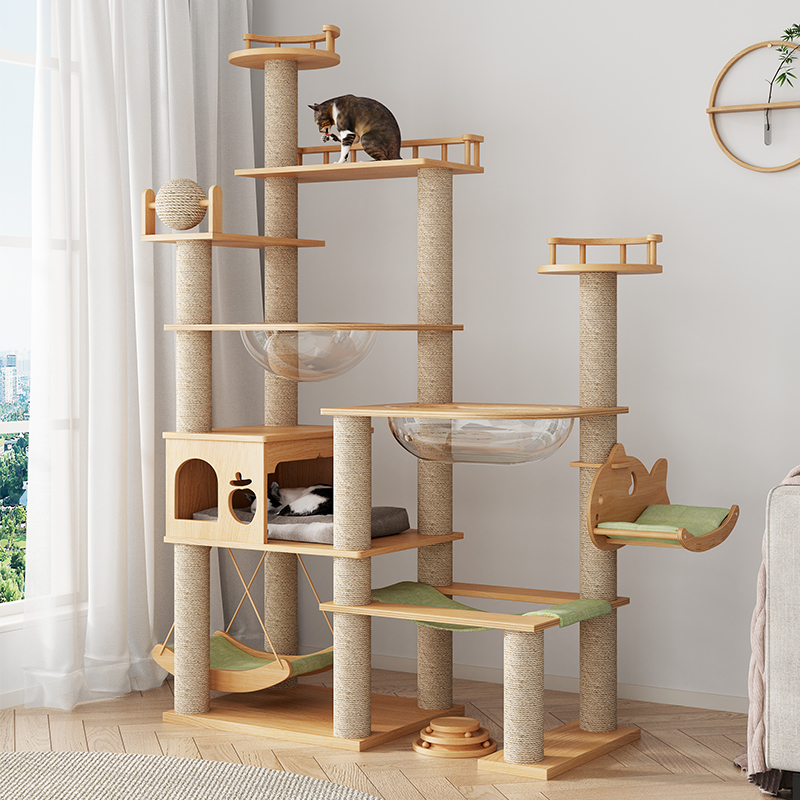 無垢材の猫クライミングフレーム、家庭用猫の巣、オールインワン、オールシーズン対応のユニバーサル猫スクラッチングフレーム、大型猫クライミングポールスペースカプセル