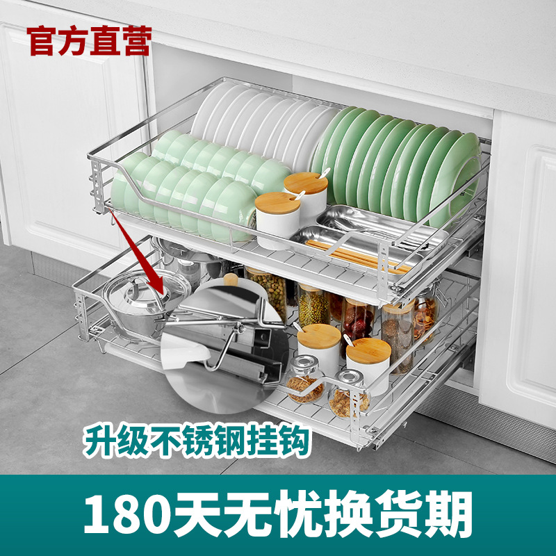 99ch卸売単層深まる47キッチンキャビネット引き出し304ステンレス引き出し式キッチンキャビネット皿バスケット収納