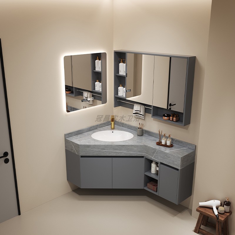 99ch卸売り異形三角浴室キャビネットセット軽豪華知能実木オーク岩板シームレス結合一体洗浄
