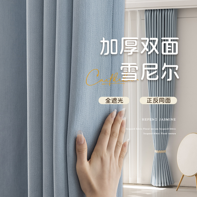 カーテン完全遮光厚みのある両面同色シェニール新しいクリームスタイル寝室ミルクティーカラー乳白色フルカシミア