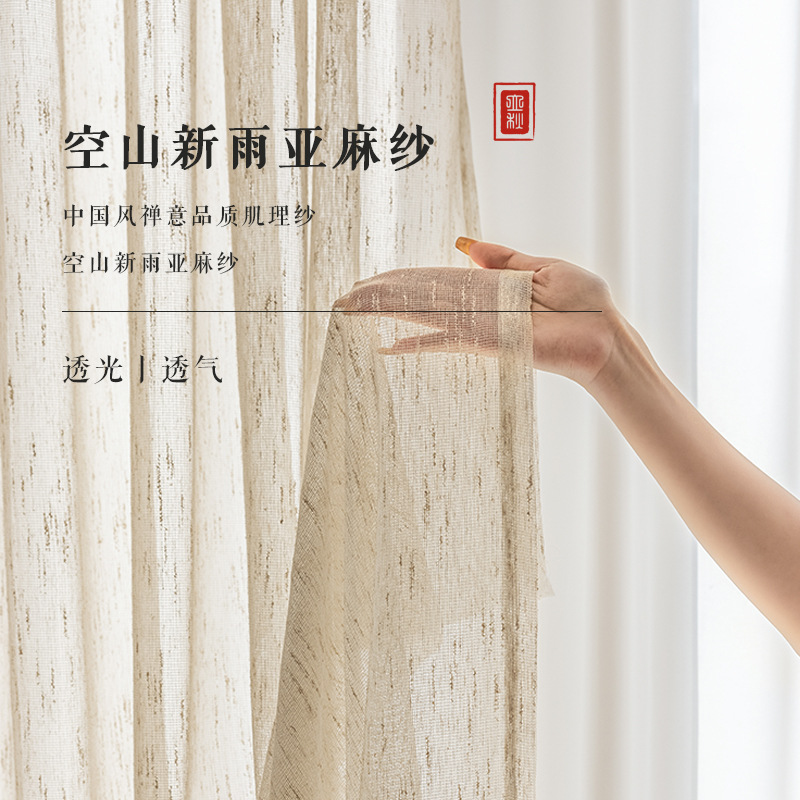 カーテン亜麻紗カーテン光が透けない麻布ベージュオフィス窓紗2022年新作綿麻生地