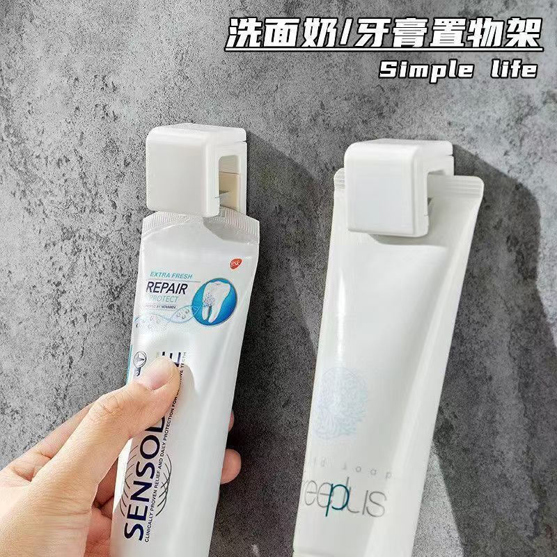 日本式浴室収納神器歯磨き粉クリップ洗顔料クリップ壁掛け家庭用穴なしプラスチック歯磨き粉ホルダー