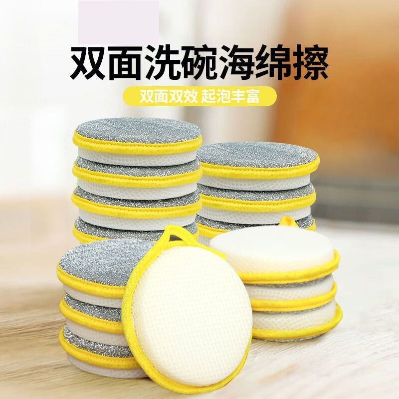 台所の食器を洗うスポンジの両面のスポンジは鍋の神器の家庭の清潔な雑巾を拭きます。