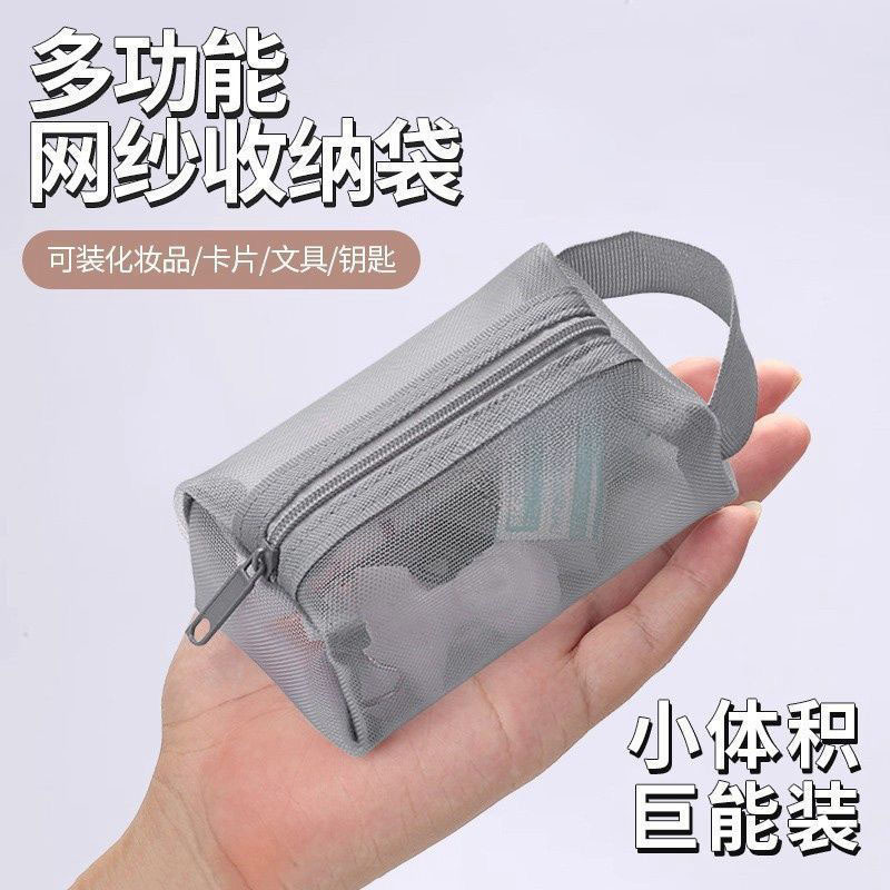 透明メッシュ収納袋小銭入れキーホルダーナイロン携帯玩具化粧品バスカード収納バッグ