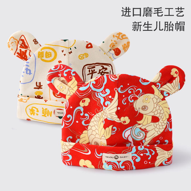 新生児赤ちゃん純綿帽子春秋0-6月保護門帽3初生幼児赤ちゃん胎帽赤い満月