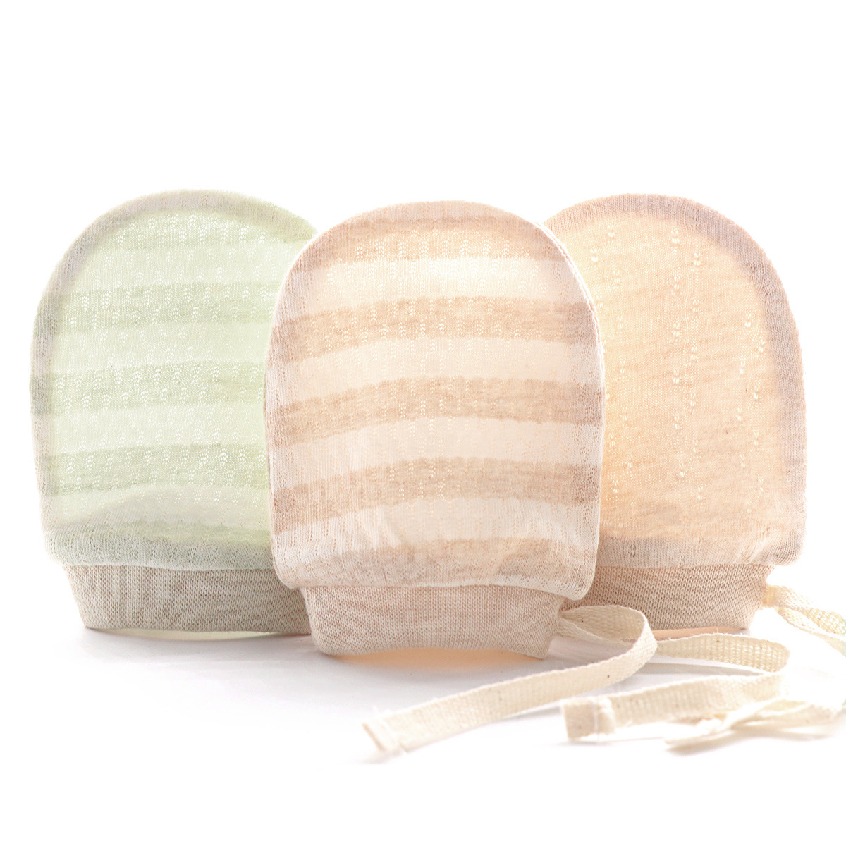 乳幼児用カラー綿は夏の目の薄い手袋の赤ちゃんの純綿の保護手袋のひもをつかんで顔をつかまないように調節できます。