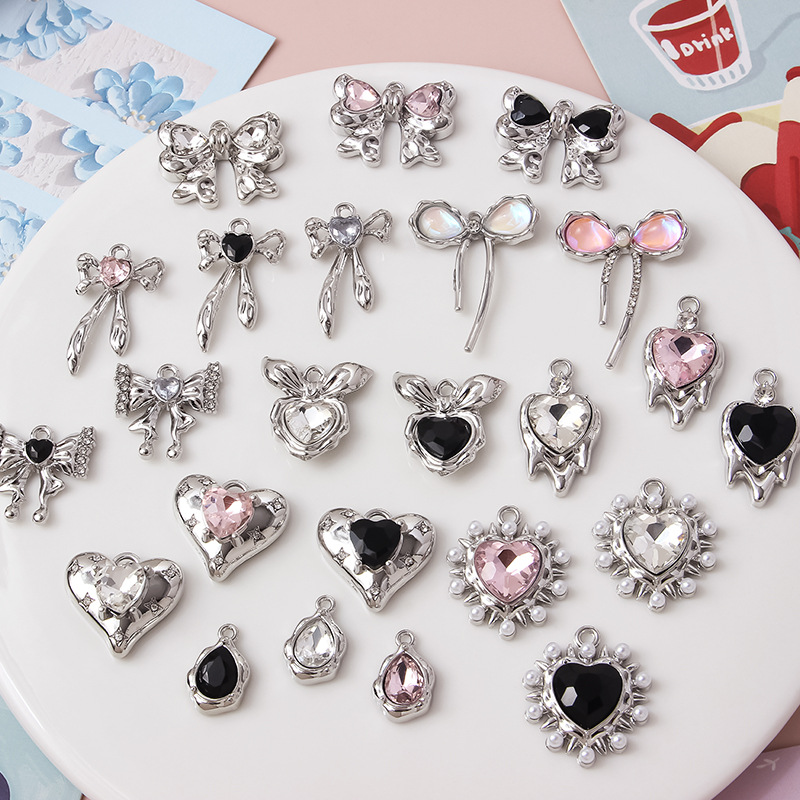 甘いクールな黒い愛の真珠の蝶結びの銀のペンダントdiyの手は耳飾りのネックレスのブレスレットの部品の材料の合金を作ります。