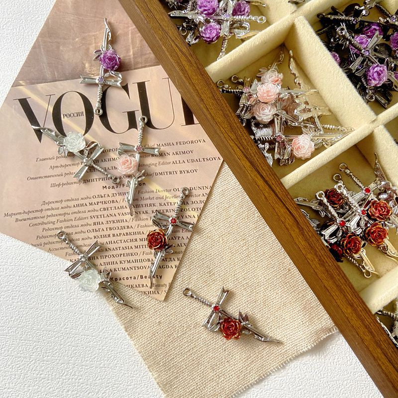 剣とバラの花の藤の十字の小さい衆の合金のペンダントのdiyのビーズのブレスレットのネックレスの部品の手作りの材料は包みます