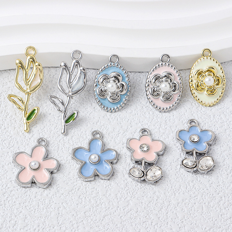 【花】合金滴油花ストラップdiy手作りネックレスブレスレット耳飾り鍵ペンダントアクセサリー