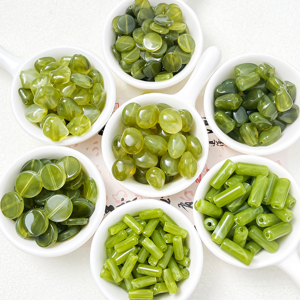 【オズの魔法使い】緑の異形の円柱の愛の円餅の樹脂の数珠の散珠のdiyの手のイヤリングのアクセサリ