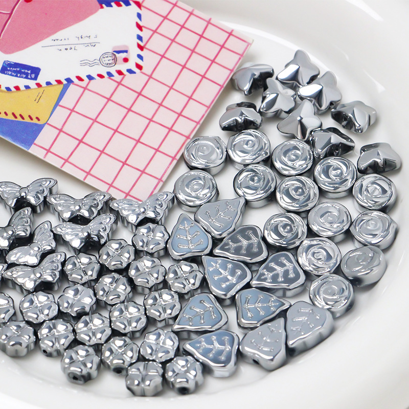 厚い銀の銀色の不規則な隔珠のバラの葉の四つ葉のクローバーの蝶の星の瑠璃の散珠diyの手作りの数珠