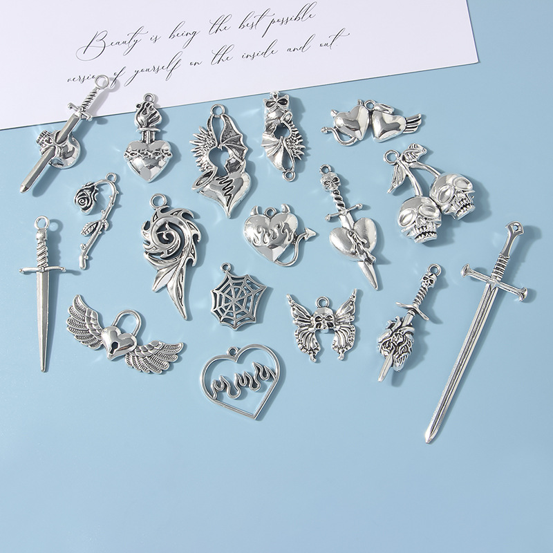 Diy個性暗黒復古風ゴシック長剣ハート型バラアクセサリーファッションヒップホップ頭蓋蝶