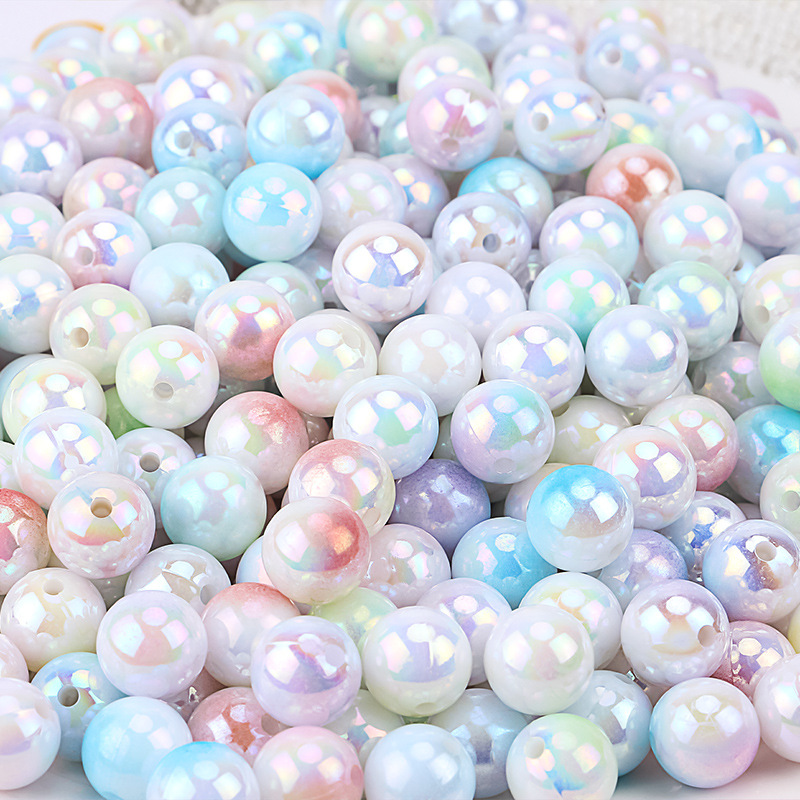 10mm人魚姫オーロラ幻珠アクリル直孔円散珠diy材料部品車掛ビーズ材料