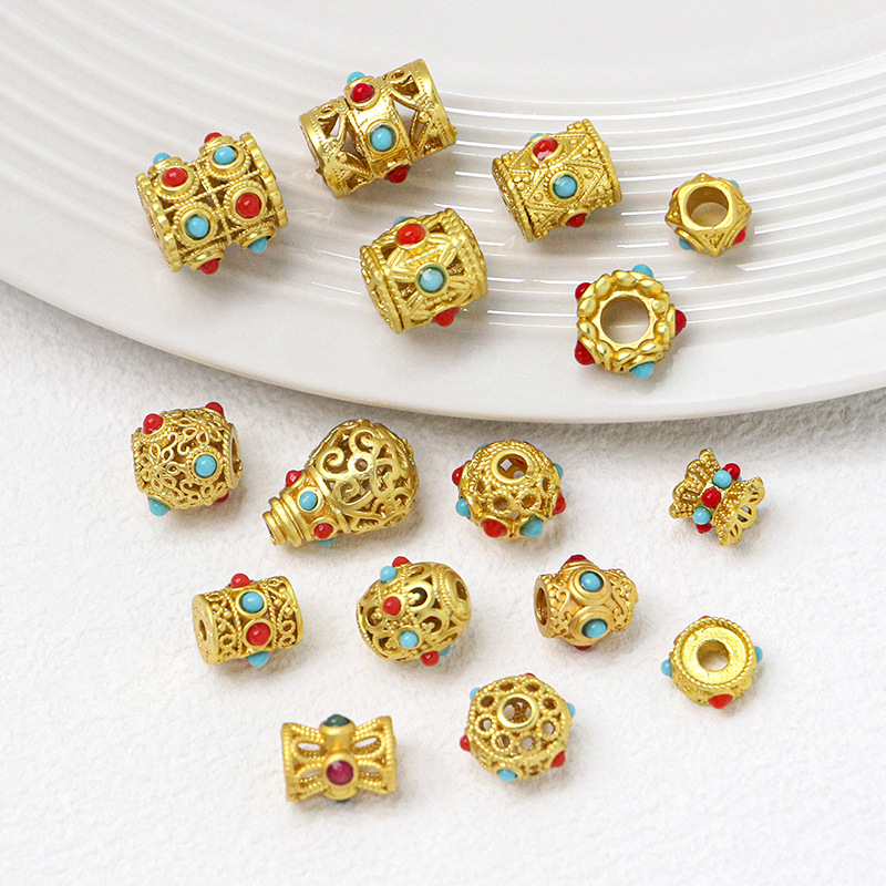 【古法沙金】透かし彫り輸送ビーズペンダントエナメルビーズdiyブレスレットネックレスアクセサリー