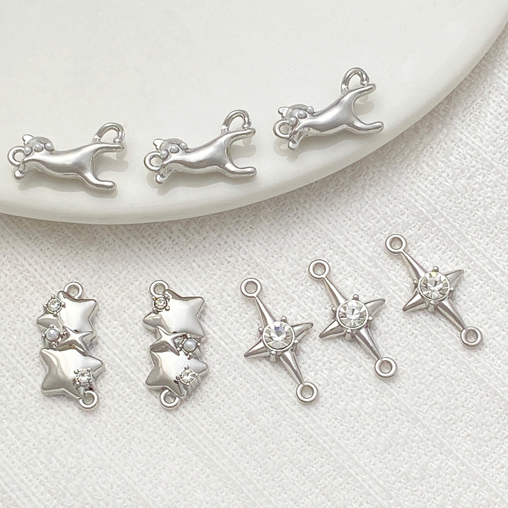 かわいいシンプルな風立体猫双吊星合金ストラップdiy手作りネックレスイヤリングアクセサリー