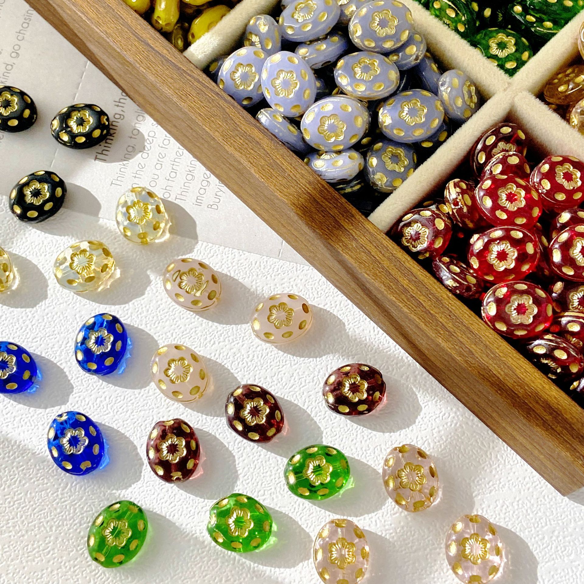 [花] イミテーションチェコガラスビーズゴールドオーバルビーズフラワーアクリル DIY 手作り素材イヤリングアクセサリー