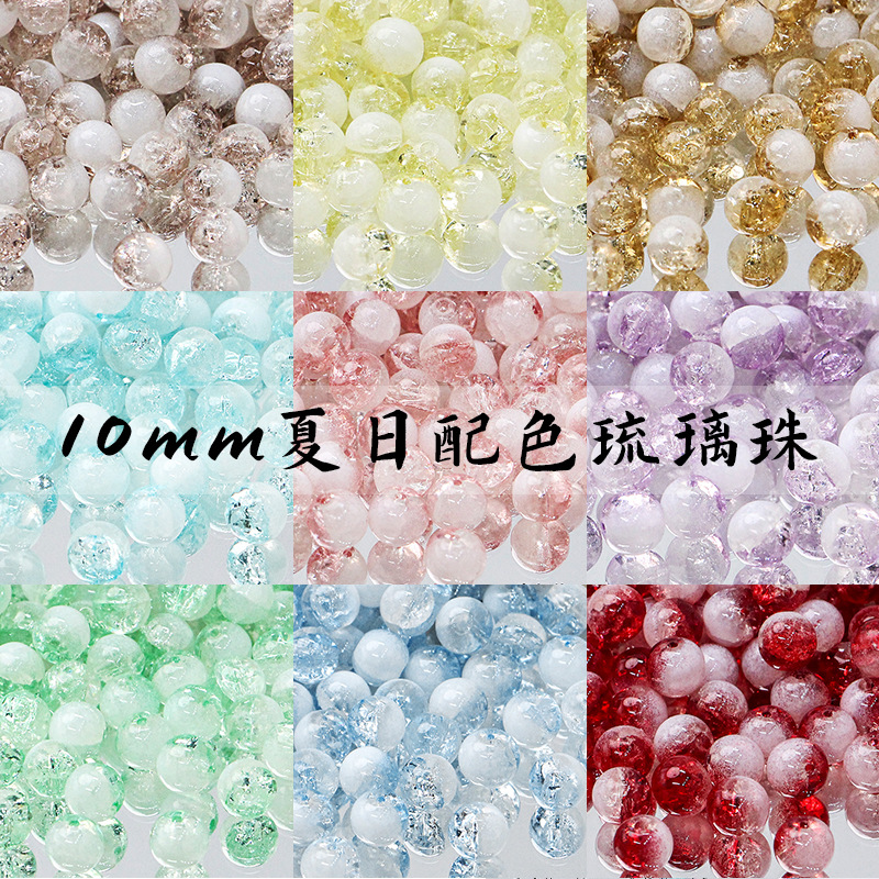 10mm氷砕爆裂透ガラス瑠璃玉diy部品材料ビーズ