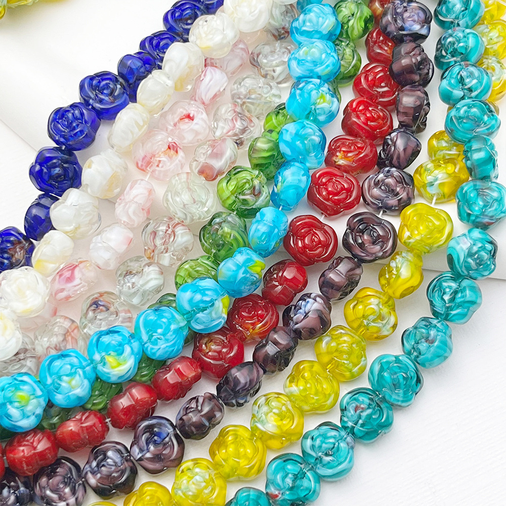 カラフルなガラスのブルーミングクリスタルローズ穴あきビーズファッションハイエンドネックレスブレスレットジュエリー素材アクセサリー