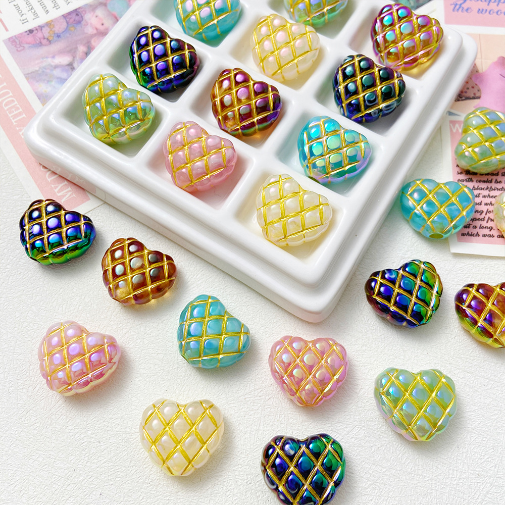 Ins風ワッフルメッキ格子愛珠菱格アクリル桃心diy手作りアクセサリー材料ビーズ