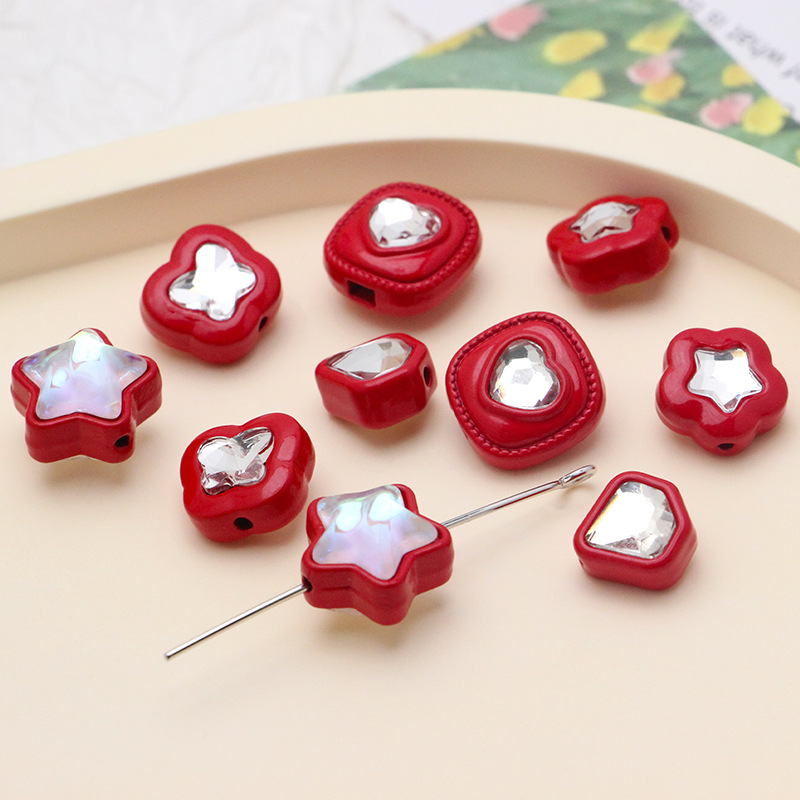 高級シンプルな赤色系の両面のダイヤモンドと合金のビーズのdiyブレスレットのネックレスのビーズのアクセサリーの材料の部品