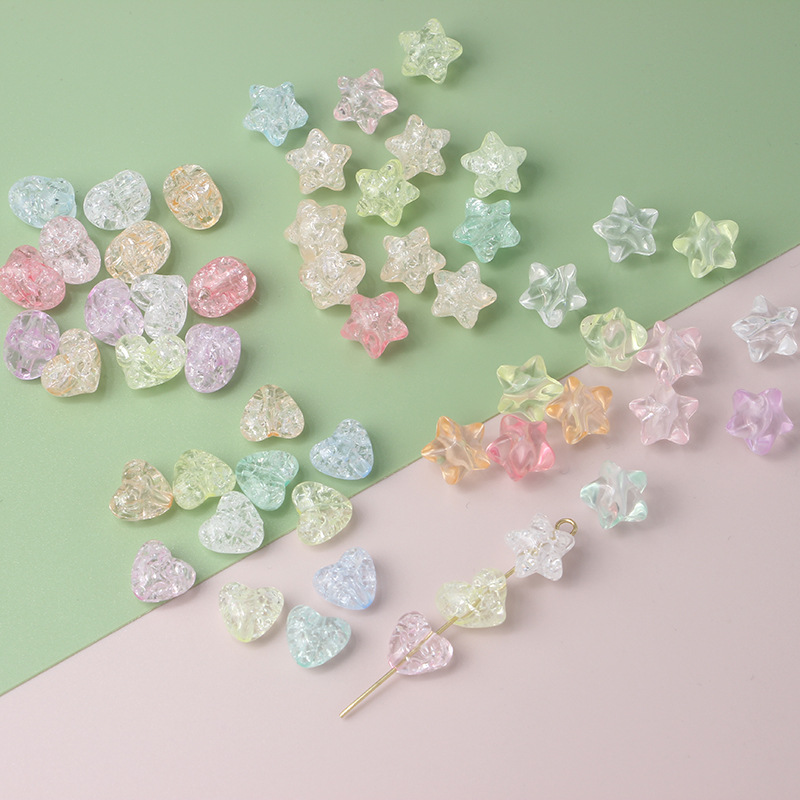 カラーアクリル五角星爆花珠裂紋珠散珠diy手作りアクセサリーブレスレットアクセサリーネックレス材料