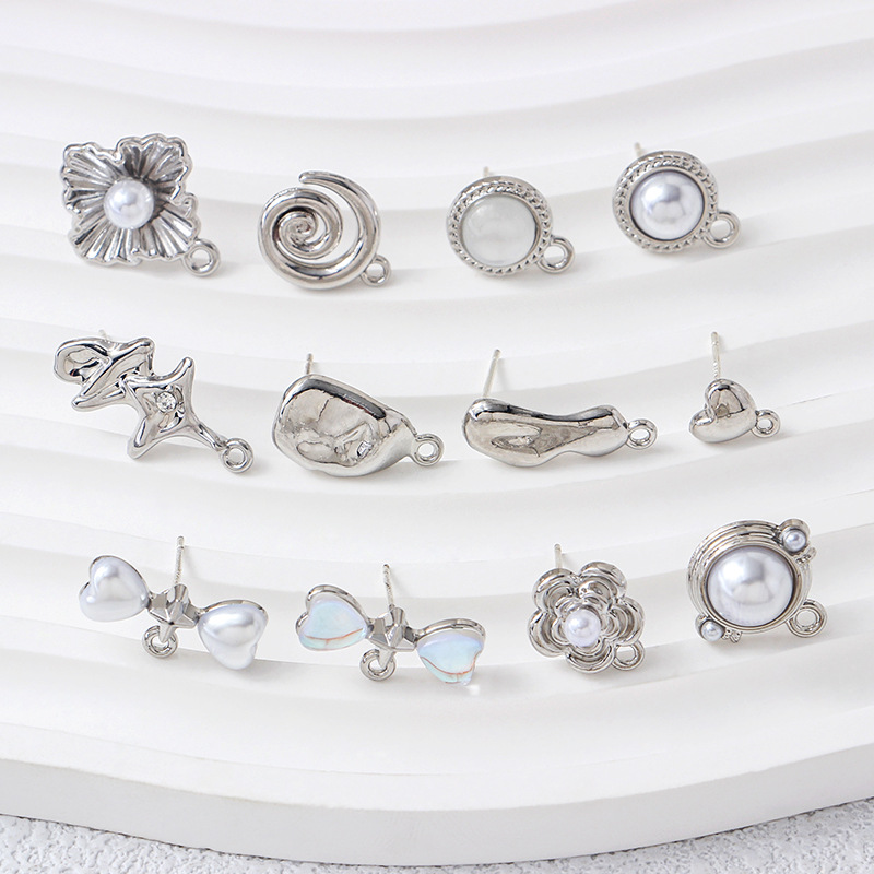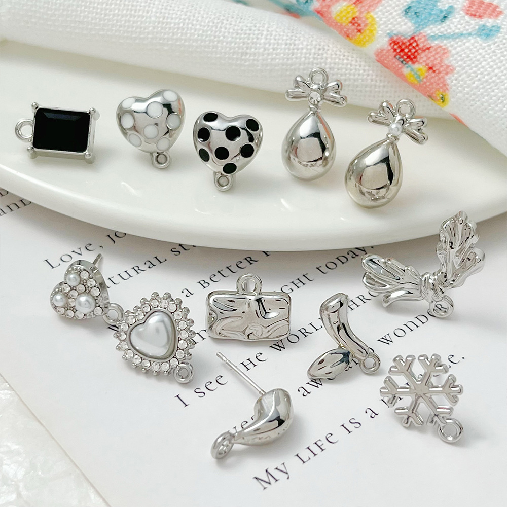 ファッションシンプルな雪花合金愛ピアスdiy材料アクセサリーペンダント翼イヤリング手作り白k色