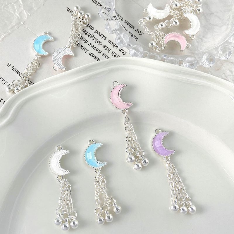 ガーリーで繊細な光沢のあるムーンロングタッセル手作り diy チェーンブレスレットネックレスペンダントビーズジュエリーアクセサリー