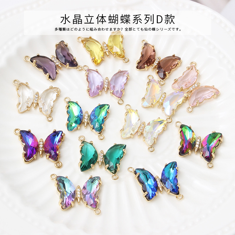 斜め双吊18k銅包金入れジルコンガラス蝶ペンダント手作りdiyアクセサリーネックレスブレスレット材料