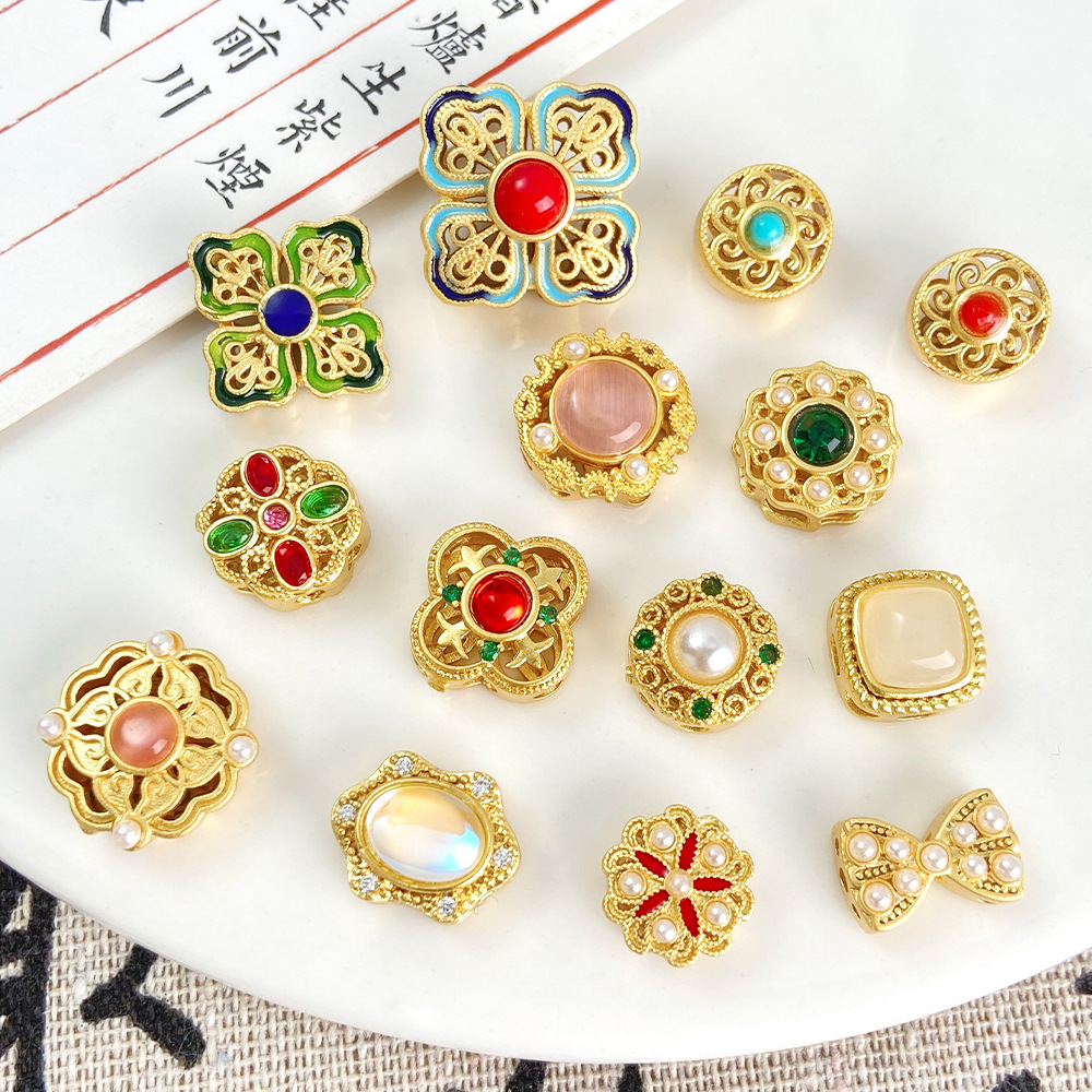 古法沙金五路財神錦鯉銅銭隔珠diyブレスレット手串編み材料部品散珠手作